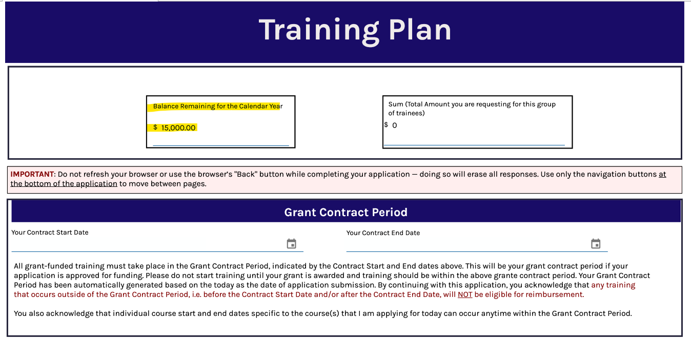 At the top of the Training Plan page in your application, you will see a box for "balance remaining for the calendar year", as shown below-